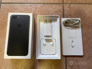 Vendo iPhone 7 Plus con memoria da 128GB, colore nero opaco. Display grande da 5,5", doppia fotocamera per ottime foto e tanto spazio per app, foto e video. Esteticamente perfetto, nessun graffio sullo schermo, qualche lieve segno di usura presente sulla scocca