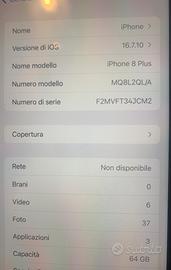 Vendo causa nuovo telefono un IPhone 8 Plus tenuto maniacalmente da quando acquistato nuovo , batteria 86 % nessun graffio. Perfetto Regalo custodia. NO SPEDIZIONE