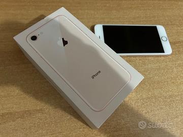 iPhone 8 64 gb apple, colore rosa con schermo esterno danneggiato ma regolarmente funzionante. Toach id perfettamente funzionante, funzionante anche la ricarica wireless. Inclusa scatola originale. Non presente caricatore perché uso il magsafe. Ideale come telefono di scorta, per uso base, oppure per riparazione/ricambi. Venduto visto e piaciuto, prezzo commisurato alle condizioni. Scrivimi per info o ulteriori foto.Non scambio.