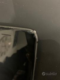 Vendo iPhone 8, nero, 64 gb con vetro posteriore crepato e uno spigolo anteriore crepato a causa di una caduta.