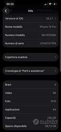 🍎 iPhone 13 Pro 128GB GRAFITE RICONDIZIONATO - OTTIME CONDIZIONI SPECIFICHE: • Modello: iPhone 13 Pro 128GB • Colore: Grafite (grigio scuro elegante) • Condizioni estetiche: 9/10 (praticamente nuovo) • Anno: 2021 • Sistema: iOS aggiornato FUNZIONANTE AL 100%: ✅ Display Super Retina XDR PERFETTO (crepa solo su vetro protettivo rimovibile) ✅ Batteria salute 100% (dura tutta la giornata) ✅ Triple fotocamere 12MP PERFETTE (foto e video professionali) ✅ Chip A15 Bionic velocissimo ✅ 5G, WiFi, Bluetooth tutto OK ✅ Chiamate, messaggi, app tutto funziona ✅ Sblocco con CODICE funzionante ✅ Nessun problema hardware tranne Face ID UNICO DIFETTO: ❌ Face ID non funziona (difetto elettronico componente) → Si sblocca normalmente con codice a 6 cifre → Per chi non usa Face ID o preferisce codice, è perfetto! INCLUSO NEL PREZZO: 📦 iPhone 13 Pro 128GB Grafite 📦 Cover Nike Nocta ORIGINALE (valore €40, rarissima!) 📦 Cavo ricarica USB-A to Lightning 📦 Scatola originale Apple (se la ritrovo) COSA NON INCLUSO: • Caricatore ufficiale (non più incluso da Apple dal 2020) PREZZO: €300 (poco trattabile - iPhone 13 Pro usato perfetto costa €450-550) 📍 RITIRO A MANO preferito: Canzo/Erba. Zona comoda, ci vediamo dove vuoi tu 📦 SPEDIZIONE possibile: Tracciata + assicurata Pagamento: bonifico anticipato 💬 CONTATTAMI: WhatsApp/Telefono: 366 723 0749 Chat Subito: rispondo velocemente 🚫 NO PERDITEMPO ✅ Telefono vero, foto reali, tutto verificabile di persona ✅ Consegna immediata, disponibile già da domani VENDO PER: Passaggio ad Android a seguito di insoddisfazione con Ios Per chi é interessato mi scriva in privato, mando altre foto e tutte le garanzie di veridicità, etc.
