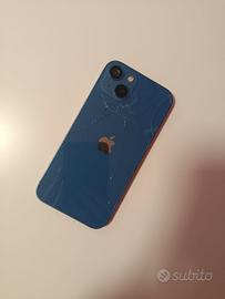 vendo iphone 13 128 gb blu vetro posteriore lesionato e torcia staccata , del resto tutto perfetto nessun altro graffio vendo con cover a vostra scelta e vetro di protezione. tasto accensione rotto