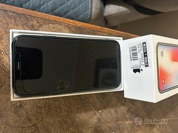 Vendo iPhone X 256 gb, funzionante e in buone condizioni, presenta all'angolo in alto vicino alla fotocamera una incrinatura dello schermo posteriore che non inficia assolutamente il funzionamento dello smartphone e della fotocamera.