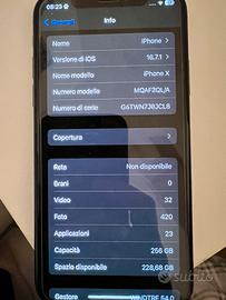 Vendo iphone x usato, perfettamente finzionante in ogni parte, schermo perfetto (sempre usato con pellicola portettiva) ma retro con crepe causa caduta (vedi foto).
