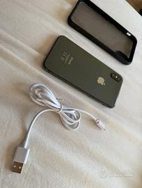 Vendo un iPhone X usato e ricondizionato con schermo NUOVO (cambiato di recente e ancora con il protettore). Include caricabatterie NUOVO e custodia in gomma/plastica. Il telefono funziona perfettamente. Durata batteria 87%. Presenta solo alcuni segni d'uso (piccoli graffi) sui lati. Non si accettano offerte né scambi.