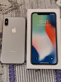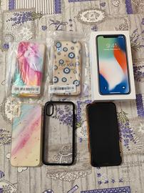 iPhone X, completo di scatola e 5 cover. Lo schermo è perfetto, sembra rotto in quanto la pellicola sopra è rovinata ma verrà sostituita.