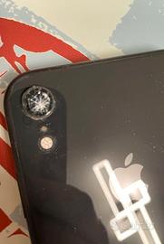 iphone xr 64gb con scatola originale. funzionante e con batteria in ottimo stato. Con pellicola leggermente rovinata, vetro perfetto. unico difetto ha la fotocamera crepata, fa lo stesso le foto ma vengono con "effetto nebbia"