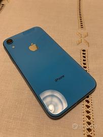 iPhone XR blu 64GB. Perfettamente funzionante Tenuto benissimo, usato sempre con cover e pellicola protettiva. Vedi foto. Venduto con 4 cover. Capacità batteria 79%.