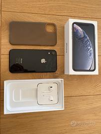 iPhone XR Nero 128 GB iOS 18.7.3, completo di cover non originale, cuffie.