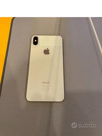 Vendo iPhone Xs Max 256GB iOS 18.4, capacità batteria 85% e Face ID non funzionante. Il telefono presenta leggere ammaccature nella parte inferiore della cornice. La confezione include il solo telefono.