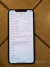 Vendo Iphone XS max 64gb bianco. Sprovvisto di scatola con carica batterie (alimentatore originale Apple - cavo compatibile). Qualche piccolo segno di usura ma niente di rilevante. Stato batteria in foto.