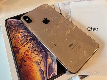 iphone xs max 64gb tutto originale display originale, batteria originale 76% vetro posteriore rotto, completo di scatola originale