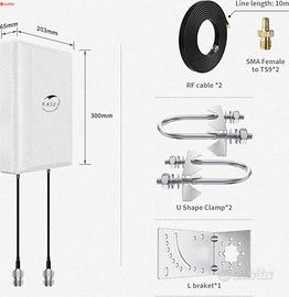 KASER Antenna 5G 4G LTE Pannello Esterno Mimo 698-2700 | 3300-3800 MHz Guadagno fino 12 dBi compatibile per Router 5G 4G Connettore N-SMA con TS9 e 2 Cavi a Bassa Perdita da 10M - Modello V3