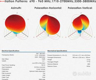 Informazioni su questo articolo ANTENNA DIREZIONALE 5G 4G: Questa antenna logaritmica 5G / 4G mimo direzionale è conveniente per la ricezione segnale LTE difficile all'interno della casa, migliora i segnali ricevuti, la velocità (a seconda dell'operatore) se correttamente posizionato ed altezza. vi darà migliori prestazioni e la stabilità della connessione, per massimizzare la velocità per la casa o nella tua sede principale. POTENZA IL SEGNALE: Con questa antenna avrete un segnale al massimo, vedrete la differenza del Speedtest, molto stabile e la connessione è nettamente più veloce, è consigliato per chi non ha ADSL o fibra ma solo 4G, versione aggiornata compatibile per tutte le frequenze di 5G. COMPATIBILE CON ROUTER 4G 5G: L’antenna è compatibile con tutti i router 5G e 4G LTE che hanno ingresso di SMA o TS9, È compatibile con tutti gli operatori come TIM, Vodafone, Iliad, Wind Tre e altri operatori virtuali, guadagno 7-12 dBi, diffidare le antenne economiche con guadagno falsificato. CONSIGLIO DI UTILIZZO: È molto importante scegliere un buon router da usare con questa antenna. Con la funzione di impostare manualmente le bande nel router (di solito la banda 3 e 7 vanno più veloce, ma hanno meno potenza di segnale, quindi questa antenna vi risolve il problema di ricezione e andrete alla massima velocità). A volte se il vostro router si aggancia alla banda come primaria B1 o B20, spesso la velocità di internet è molto scarsa,