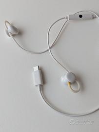 Gli auricolari sono originali Google, con connessione USB-C, microfono integrato e comando sul cavo. Audio pulito e perfettamente funzionanti.