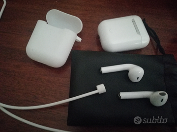 Air pod (NO APPLE) completi di astuccio caricatore, copri astuccio in silicone protettivo, sacchettino in similpelle, cordino in silicone, cavetto ricarica usb. Funzioni touch su entrambi gli auricolari. Nuove perfettamente funzionanti e compatibili sia con Apple che con Android. Euro 30. Possibile spedizione