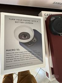Vendo kit fotografia mobile Moment completo per iPhone 15 Pro / Pro Max. Il set include: •Lente Macro 10x Moment T-Series •Permette scatti ultra ravvicinati con qualità professionale •Effetto “microscopio”: perfetta per dettagli, texture, insetti, prodotti ecc. •Cover Moment originale (Red Clay) •Compatibile con MagSafe •Predisposta per montaggio lenti Moment •Drop-in Lens Mount •Supporto per agganciare perfettamente la lente alla cover •Diffusore + tappo lente + sacchetta originale Sistema modulare: monti la lente in pochi secondi e trasformi l’iPhone in una vera camera macro. Usato due volte perche mi é stato regalato ma non lo utilizzo. Costo del nuovo oltre 250€