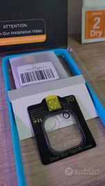 Vendo questo kit per proteggere iPhone 12 Pro Max con una cover trasparente, 5 vetrini per le fotocamere e 2 pellicole in vetro temperato, per di più anche con spatolina per far aderire la pellicola e cornice per applicarla dritta. vendo perchè non posseggo più questo modello.