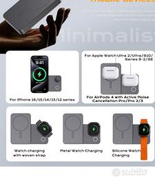 KU XIU K2 Power Bank Magnetico 5000mAh 3-in-1, Caricatore Wireless 15W Certificato Qi2 con Stand Pieghevole, Stazione Ricarica Apple per iPhone, Apple Watch, Auricolari – Compatto per Viaggi – nero