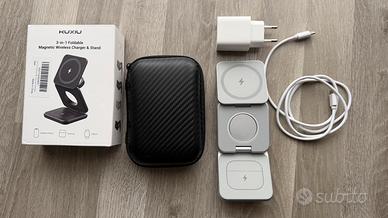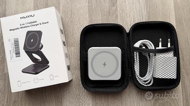 KU XIU X40 Caricatore Wireless Magnetico, Stazione di Ricarica Pieghevole 3-in-1 per iPhone 16/15/14/13/12, 5W per Apple Watch 10/9/Ultra/SE/8/7/6/5/4 - grigio