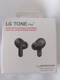 Vendo Auricolari Lg Tone Free Fp5 per inutilizzo, come nuovi utilizzati solo 3 volte con Compatiblità Android / iOS e relativa applicazione. Specifiche: - Cancellazione attiva del rumore (ANC) e modalità ambiente; - Audio Meridian - Resistenza all'acqua / schizzi IPX4 - Cuscinetto copriauricolare in gel medicale - 3D Sound Stage - 3 Microfoni - Modalità Ambiente Modalità Chat - Associazione multipla. Auricolari di qualità con suono bellissimo Meridian, li vendo solo perchè mi dispiace tenerli nel cassetto inutilizzati. No Scambi / No Trattabile. Sono presenti oltre agli auricolari, la scatola, il manuale e tutti gli accessori. Per qualsiasi info sono a Vs. completa disposizione.