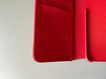 Cover Logitech a portafoglio rossa per iPhone 6 e 6s, funziona anche come supporto per tenere il telefono in orizzontale, si possono inserire carte.