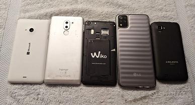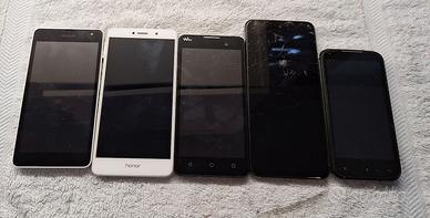 piccolo lotto di 5 smartphone per ricambi, si accendono tutti, ma per essere utilizzati hanno bisogno di essere sistemati.