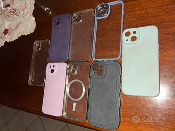 Lotto di 8 cover per iPhone 14. - Cover trasparenti - Cover colorate (rosa, grigio, nero) - Cover con protezione fotocamera - Cover con anello magnetico Se venduti singolarmente 0,80 cent ciascuno. Contattami e ci accordiamo