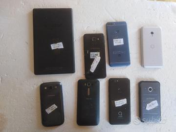 Lotto AMAZZON SAMSUNG HUAWEI , Sono 1 - TABLET AMAZZON , come in foto, e questi Smartphone, 2 – SAMSUNG J6 di colore nero, funzionante ma con schermo crepato, non si vede acceso perché non è caricato , 3 - HUAWEI blu, 4 – VODAFONE argento, 5 - SAMSUNG nero S II neo, non è acceso perché scarico. 6 – ASUS nero. 7 – ALCATEL, 8 – SAMSUNG. Sono tutti funzionanti come si vede benissimo in foto . ATTENZIONE e leggere bene !!!! Sono tutti bloccati con account di GOOGLE. Quindi si vendono per pezzi di ricambio. Si vendono senza caricabatteria. Si vendono tutti in blocco a Euro 50 compresa di spedizione in Italia isole comprese, non si accettano resi, WhatsApp 3297923185 Attenzione si aggiungono I HP tablet come in foto che non si accende, 4 iphone 5S di cui uno funzionante e sbloccato, e un samsung che non si accende.