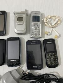 Vendo lotto di 10 cellulari Samsung con tre caricabatterie originali Samsung e due cavi usb Samsung adatti per questi cellulari. Vendo come non funzionante o parti di ricambio. -Samsung GT-S5560 si accende lo schermo ma rimane bloccato. -I primi tre Samsung non hanno batteria quindi non li ho potuti testare . -Tutto il resto non si accendono. Presenti cuffie bianche Samsung , una batteria bst2408le e una cover posteriore non so che modello . Prezzo leggermente trattabile