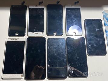 LOTTO DISPLAY APPLE-HUAWEI 9PZ. composto da pz.2 iphone 6s, pz.1 iphone 6, pz.3 huawei p9 lite, pz.1 huawei p30 lite, PZ.1 batteria huawei p9 hanno tutti il vetro rotto ma i display funzionano perfettamente. Contattatemi per ulteriori info Mario 3297369871