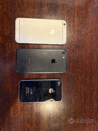 Iphone 6 fuori intatto ma si ferma alla schermata di avvio. Iphone 7 schermo rotto, retro non bellissimo, si feram alla schermata di avvio. Iphone 4s schermo rotto.
