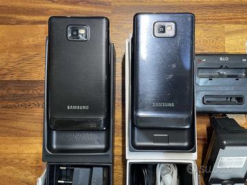 Lotto di Smartphone Samsung Galaxy S2 ed S2 Plus funzionanti. Vendo l'intero lotto comprensivo di altri cellulari (Samsung GT-S5570, NGM Premier, Doro) e accessori samsung vari (vedi foto) di cui non ho certificato il corretto funzionamento.