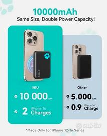 Vendo power bank INIU MagSafe da 10.000 mAh, nuovo in scatola, mai usato.
