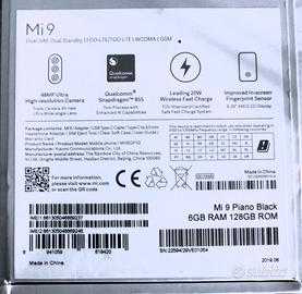vendo xiaomi MI 9 perfettamente funzionante modello M1902F1G usb C ram 6GB memoria 128 GB LTE 4G consegna a mano in zona no spedizione non trattabile EURO 80
