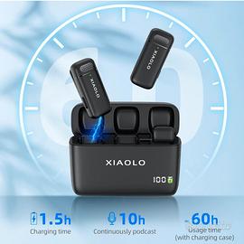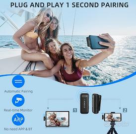 Microfoni a clip wireless per iPhone con custodia di ricarica 10H, con 3 livelli cancellazione del rumore per una registrazione audio chiara
