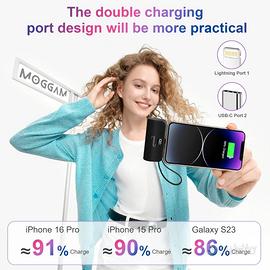 •✅ COMPATIBILITÀ E ACCESSORI Compatibilità universale: Compatibile con dispositivi USB Tipo C e Lightning, perfetto per mini power bank iphone. Accessori inclusi: Custodia protettiva e scatola per il trasporto.