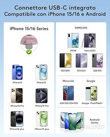Mini Power Bank iPhone e ANDROID USB C 5000mAh, 20W Ricarica Rapida Powerbank con Supporto Richiudibile, Caricatore Portatile Piccolo con LED Display per i-Phone 16/15 Pro Samsung Cavo non necessario,Rosa