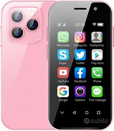 NUOVO MAI USATO... ACCESO SOLO PER CONTROLLARE IL FUNZIONAMENTO. Mini smartphone sbloccato telefono cellulare 4G da 3,0 pollici, doppia scheda SIM, batteria da 2600 mAh, fotocamera da 2 MP + 5 MP, sblocco facciale, telefono per bambini(rosa,3GB+32GB) Mini formato da 3,0 pollici: 94 * 47,4 * 12,5 mm. Di piccole dimensioni, può essere riposto in un portafoglio o in una tasca per indumenti, molto portatile e leggero. Multifunzionale: supporta chiamate vocali e video, messaggi di testo, riproduzione musicale, Bluetooth, FM, WIFI, riconoscimento facciale, WhatsApp, OTG, GPS, fotocamera da 2 MP+5 MP. Questo telefono può essere utilizzato come un buon telefono di riserva quando si viaggia e si lavora. Doppia SIM 4G: supporto GSM: 850/900/1800/1900. WCDMA:B1/B5/B8. FDD: B1/B3/B5/B7/B8/B20/B28/B28A. TDD: B34/B38/B39/B40 /B41. Processore: Android 9, MT6739CW/quad-core da 1,28 GHz. 👉Telefono di backup: questo mini smartphone è dotato di una batteria da 2600 mAh, sufficiente per supportare l'uso quotidiano