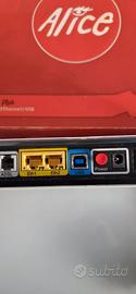 Modem Alice Adsl con interfacce Ethernet /USB con guida d'installazione con CD auto-installante, cavi di collegamento e filtro ADSL.