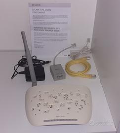 Doppino telefonico, cavo ethernet, filtro ADSL ed alimentatore sono inclusi.
