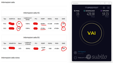modem router da interno incredibile ha delle antenne potentissime e raggiunge velocita' elevate con pochissimo segnale guardate i valori TIM dello screen e la velocita' raggiunta (notare upload e ping )