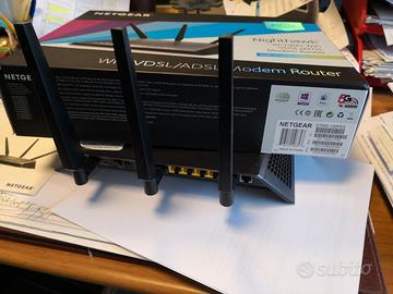 VENDO COME NUOVO POTENTE MODEM ROUTER MARCA NETGEAR MODELLO D7000 NIGHTHAWK AC1900 WI-FI VDSL/ADSL PER CONNESSIONI VELOCI FIBRA MISTO RAME PERFETTAMENTE FUNZIONANTE E COMPLETO DI SCATOLA E ACCESSORI . PREZZO AFFARE EURO 90,00 NO PERDITEMPO. PER INFO CELL. 3492889677 EMAIL: PULEO@INWIND.IT