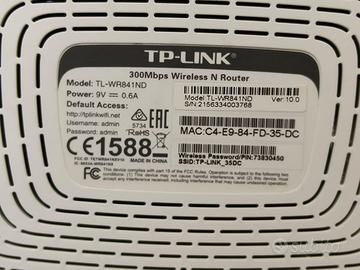 Vendo modem router ADSL WIFI Tiscali modello TechinicolorADSL. Frequenza WIFI 2,4 Ghz, n°4 porte dati, completo di alimentatore 220 Vca e cavetto dati ad 8 pin. Usato e perfettamente funzionante, vendo per passaggio alla fibra. Vendo ad euro 15,00 Vendo TPLINK WIRLESS N ROUTER TL-WR841N 300 MBPS VER 9.2 LAN WIFI 2.4 GHz WPS 802.11bg Vendo ad euro 20,00 Usato e perfettamente funzionante, vendo per passaggio alla fibra. Per entrambi euro 30,00 Contattatemi preferibilmente tramite messaggio whats'app od Sms. Spedisco in tutta Italia, non compreso nel prezzo. Pagamento: bonifico anticipato o paypal amico. No poste Pay.