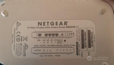 54 Mbps Wireless ADSL Modem router DG834G Marca Netgear con scatola, libretto istruzioni, garanzia e cavetti vari (vedi foto) MANCA FORSE IL CAVETTO DI ALIMENTAZIONE usato pochissimo, da 2 anni non viene più utilizzato ma dovrebbe essere ancora funzionante