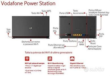 Il dispositivo è compatibile con la fibra ottica e con la ADSL. Puoi selezionare sia la rete a 2,4 GHz sia quella a 5 GHz. Inserendo un dongle USB compatibile, puoi utilizzare una SIM dati Vodafone per la navigazione.