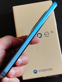 Vendo Motorola E15 colore azzurro, pari al nuovo, utilizzato solo 15 giorni. Telefono perfettamente funzionante, senza segni di usura.