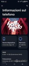 vendo tenuto benissimo Motorola Edge 40, color blu Pantone, caratteristiche in foto. completo di scatola, caricabatterie e cover trasparente nuova.