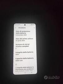 Come da titolo vendo smartphone della motorola modello edge 70 sottilissimo e leggerissimo senza rinunciare alle performante funzioni,cosa spettacolare di questo smartphone in vendita e che è nuovo nel vero senso della parola perché io il telefono l'ho ricevuto in regalo dall'azienda dove lavoro lunedì e quindi utilizzato solo 4 giorni e quindi come si evince dalla foto solo 2 cicli di ricarica della batteria. Prezzo vero affare, che dire buona asta a tutti.N.B.Ovviamente non posso fornire prova di acquisto cartaceo perché come ho già detto è un regalo ma per la garanzia fa fede il codice imei registrato sul sito motorola