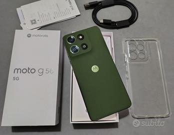 Vendo o scambio splendido Motorola G56 5G originale, colore Pantone Dill Green in pelle vegana, completo di scatola, accessori sigillati, cover di silicone trasparente in regalo e garanzia italia no brand con scontrino Mediaworld.
